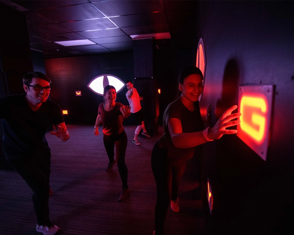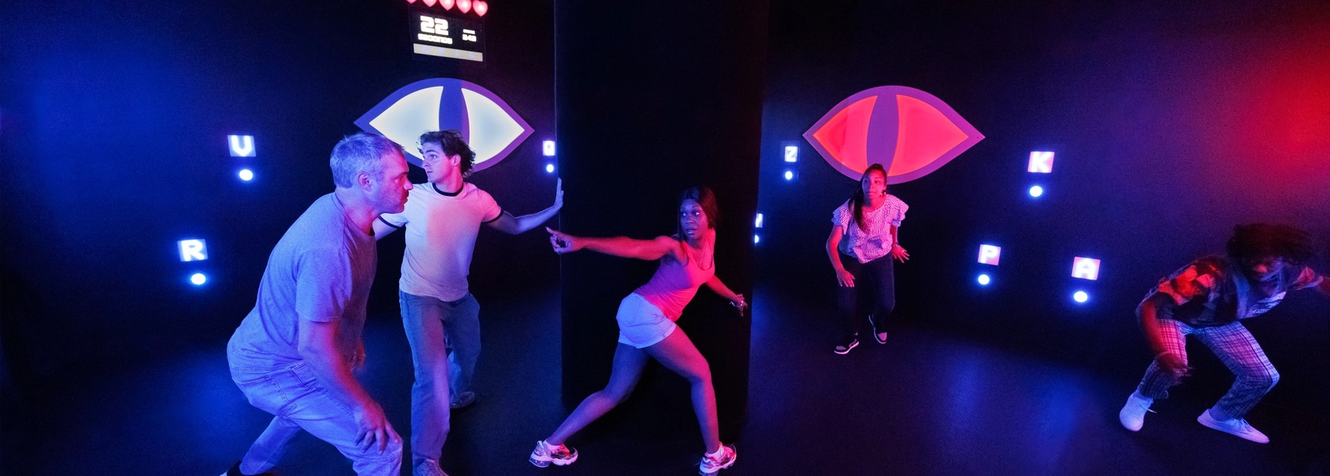 Numbers light up randomly around the room. Players must quickly press the corresponding buttons while avoiding the demon’s randomly appearing line of sight.