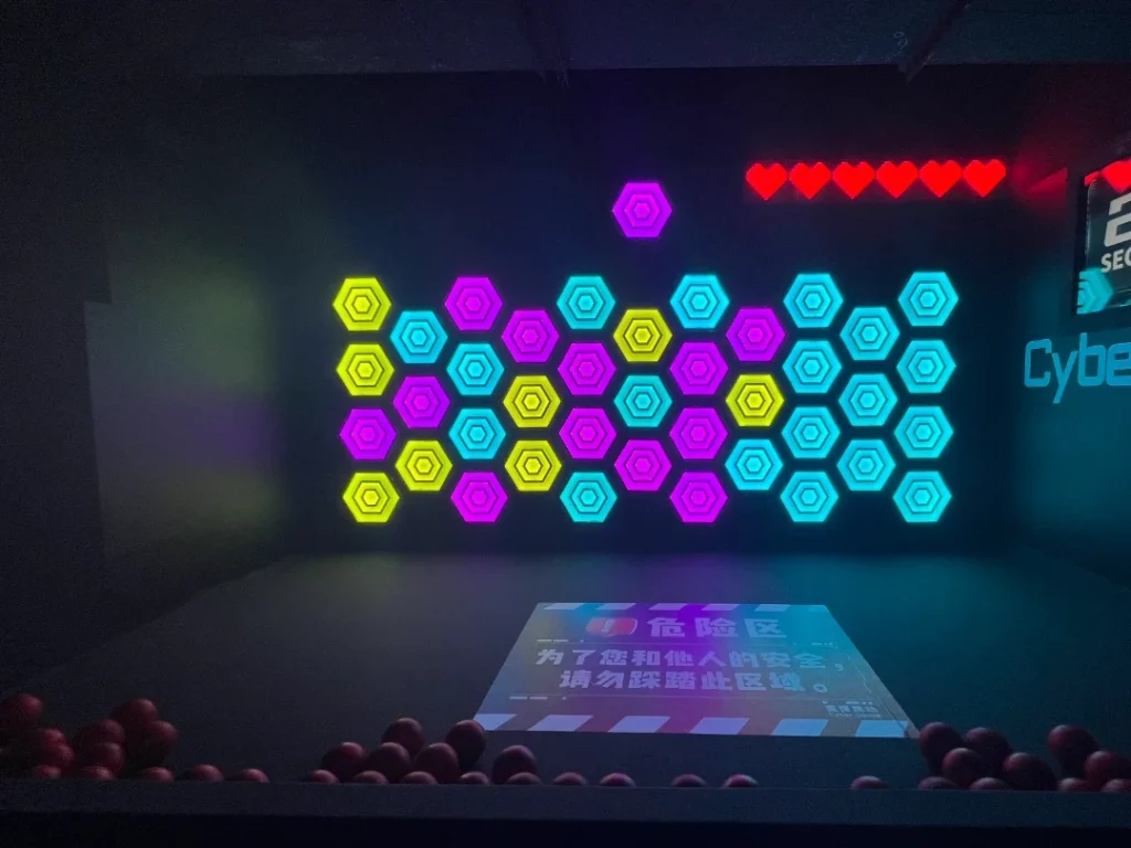 Target Toss is an LED wall interactive game where players throw tennis balls to hit target blocks and earn points.We provide a backend system that allows you to customize game rules or create entirely new gameplay.